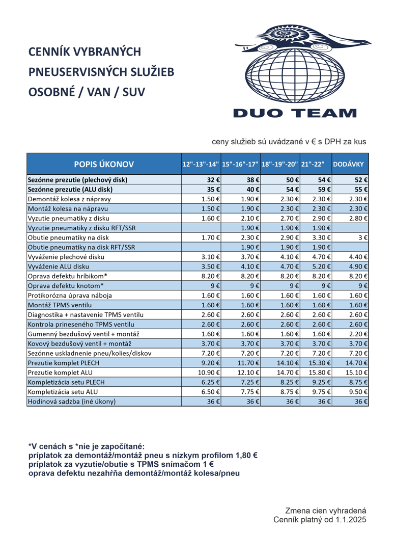 Prezúvame všetky typy VAN a dodávok, opravujeme defekty a vyvážame kolesá.